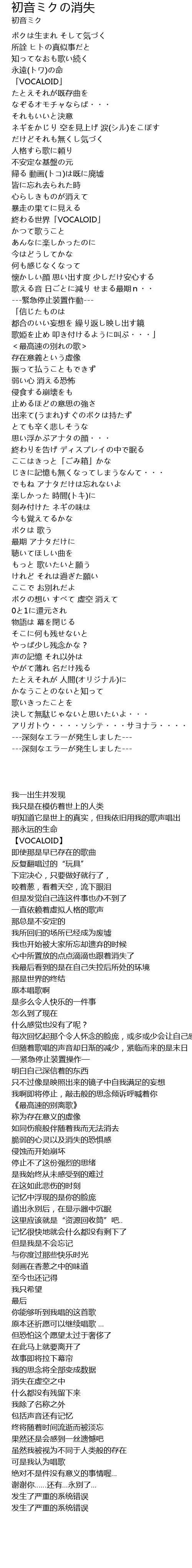 ボカロ 初音ミクの消失 歌詞の画像32点 4ページ目 完全無料画像検索のプリ画像 Bygmo