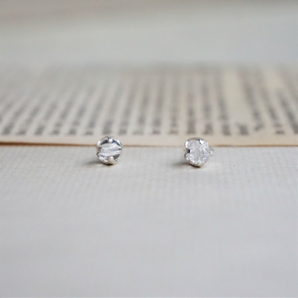 4月誕生石 白水晶rock Crystal 誕生石系列birthstone 天然石耳環貼耳耳針 蝦皮購物